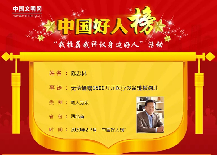 陈忠林董事长荣登“中国好人榜”