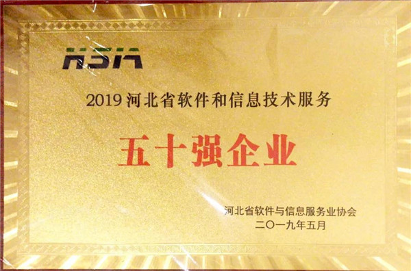 惠斯安普荣列“2019河北省软件和信息技术服务50强”