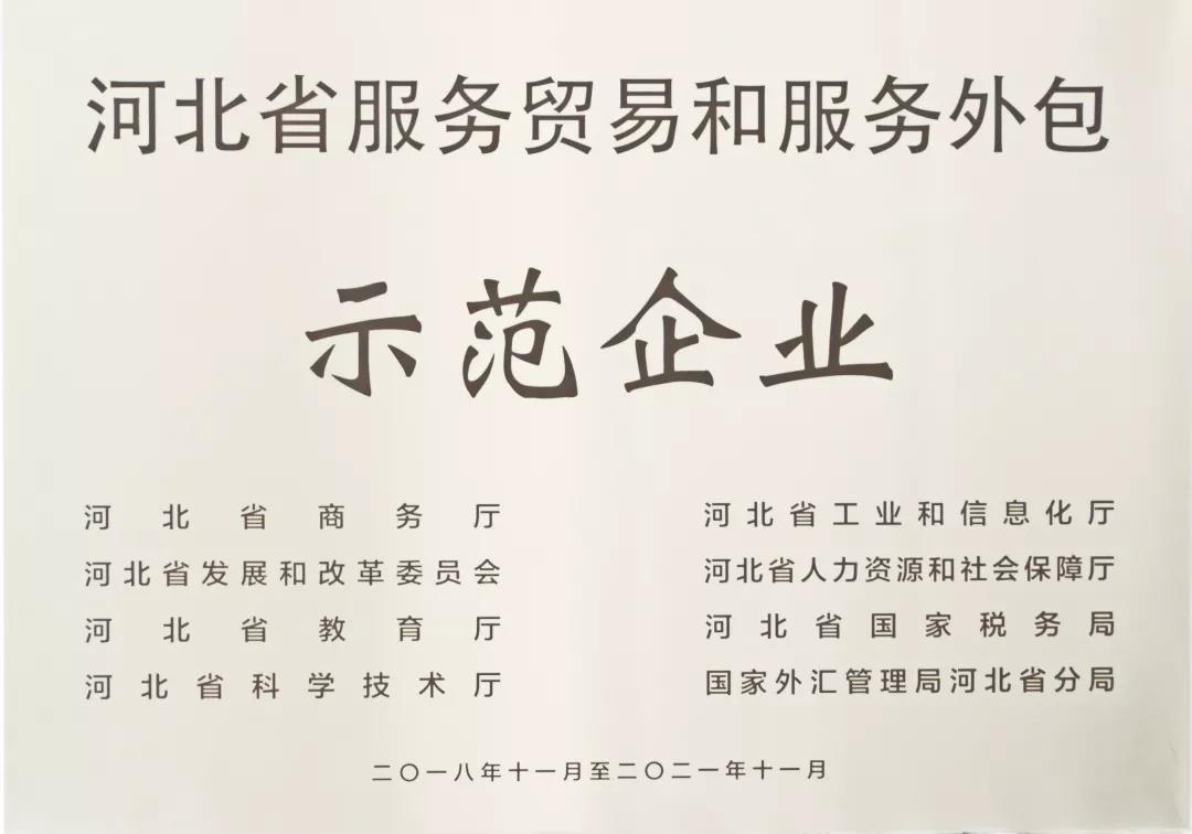 惠斯安普荣获“河北省服务贸易和服务外包示范企业”荣誉称号