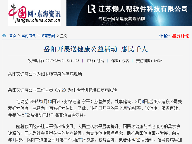 岳阳艾迪康应用HRA开展全民健康筛查服务,惠民千人